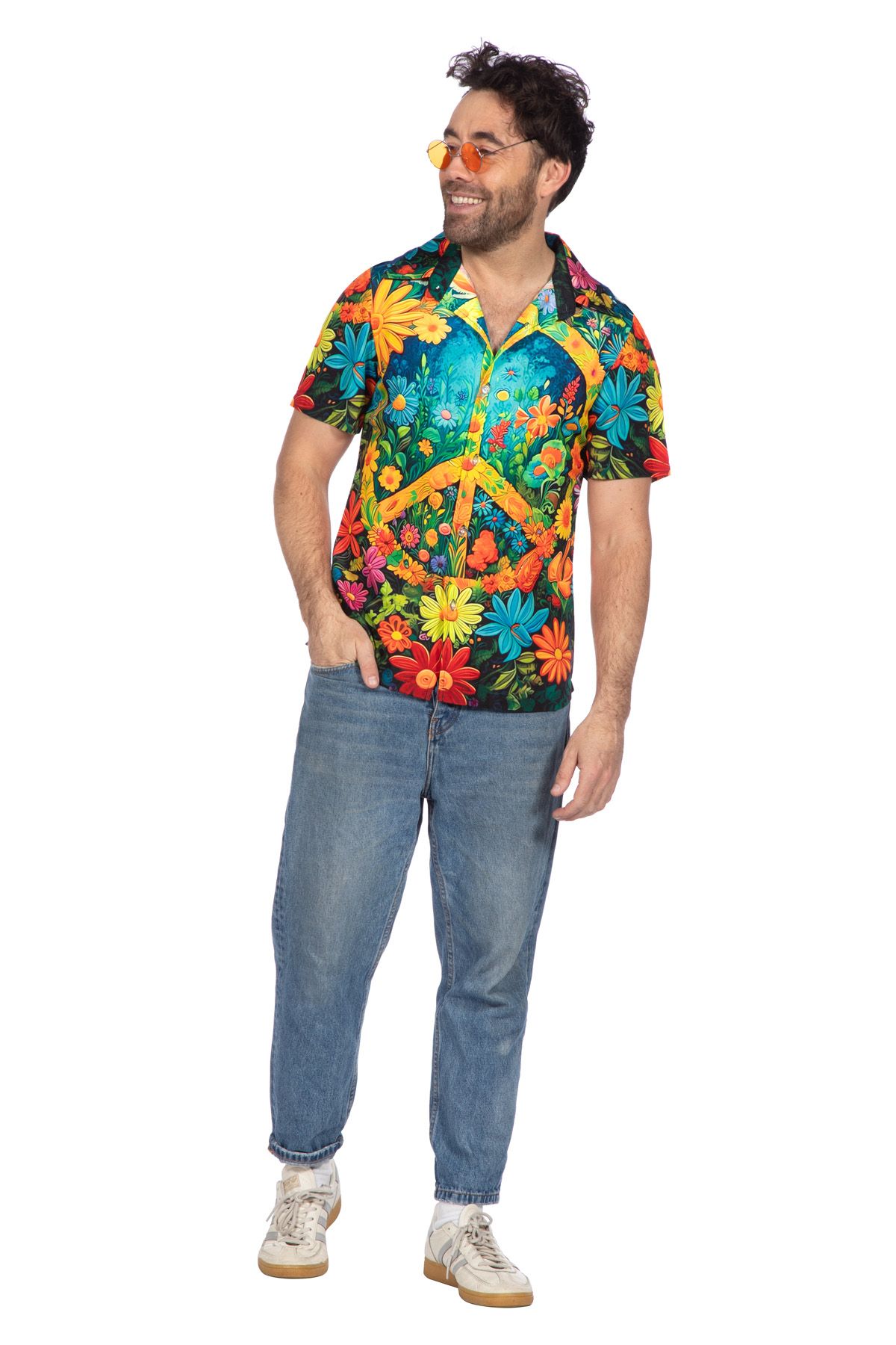 Party shirt hippie peace en bloemen (V)