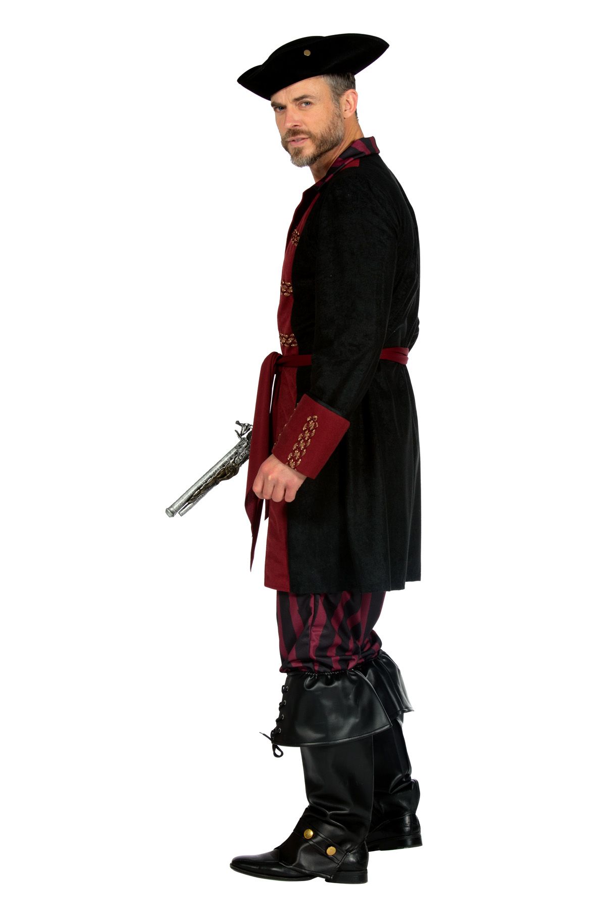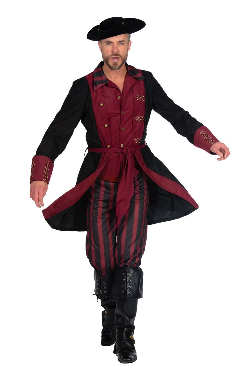 Piraat outfit heer burgundy/zwart